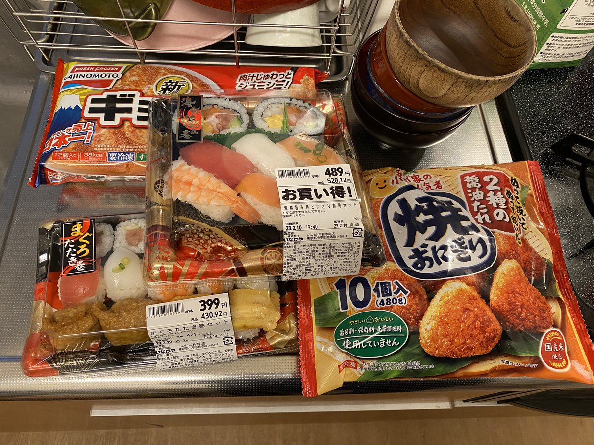 昨日の夕飯はパック寿司、根菜類と水餃子のスープ、カマンベールチーズ、その他 pic.twitter.com/NrEwkVOhA6