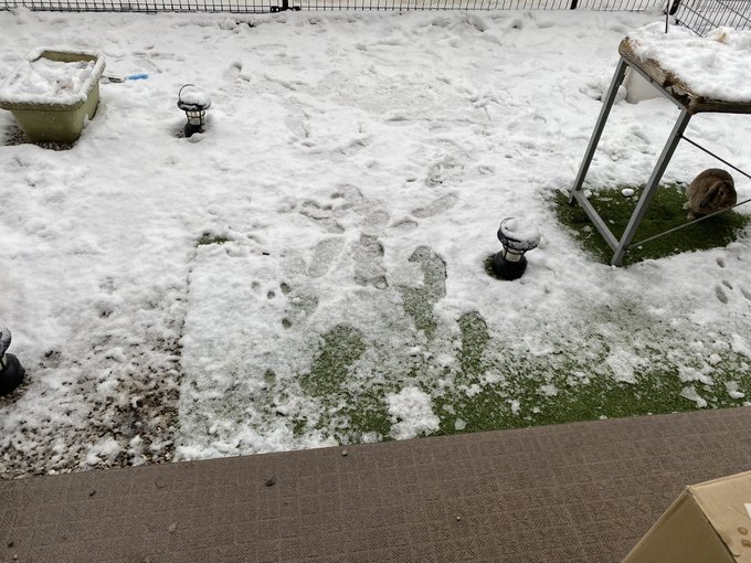 庭の雪は少し残って凍ってるけど、外が結構暖かいので一日もたんだろな。 pic.twitter.com/B0PMmNa9Ta