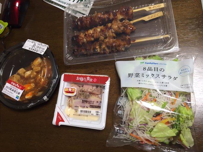 帰ってくるとそこそこ雨が降ってますわね。コンビニで買い物して帰宅。