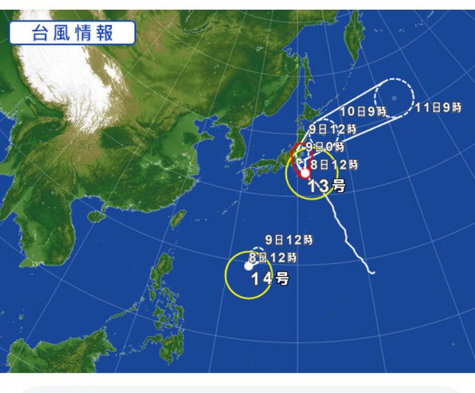 RT @livedoornews: 【猛烈】台風21号 今年最強の勢力に発達して日本列島直撃か news.livedoor.com/article/detail… あすになると中心気圧が905ヘクトパスカルまで下がって、今年発生した台風の中では最も発達する予想となっています。 pic.twitter.com/Bc8txiDQbq