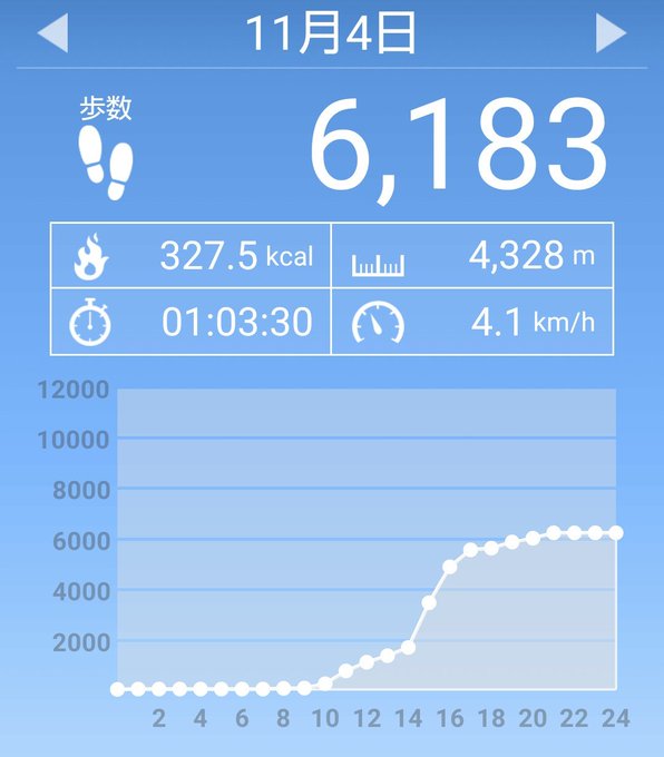 11月29日(金)の歩数は6282歩、消費カロリーは325キロカロリー。 pic.twitter.com/v5IOS6S9ba