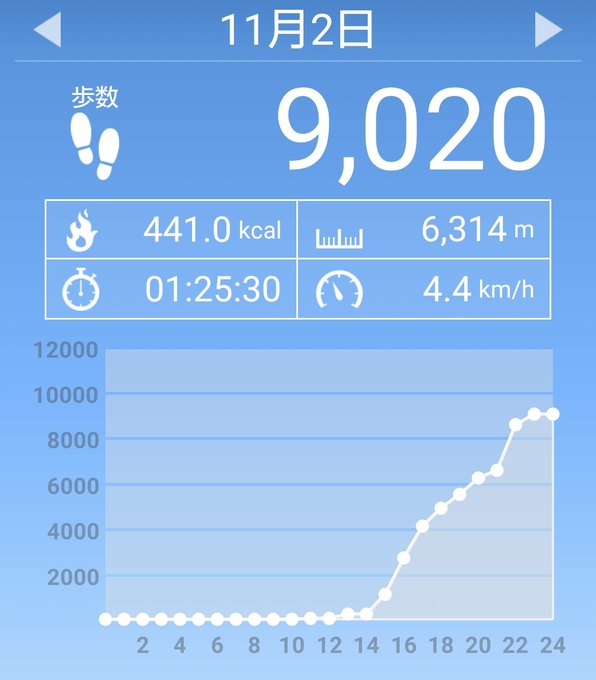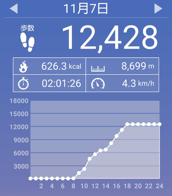 11月28日(木)の歩数は9600歩消費カロリーは495キロカロリー。 pic.twitter.com/JYDl6SW7tc