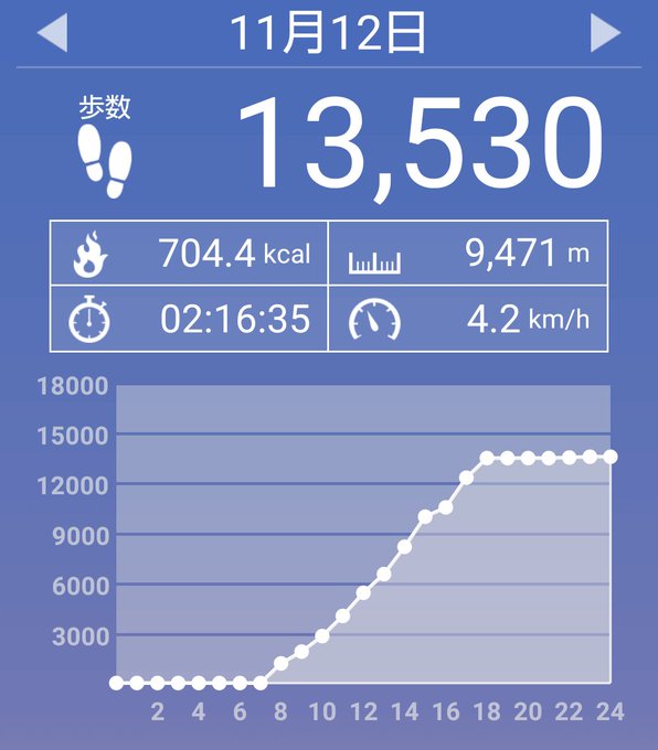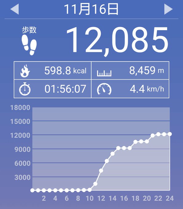 11月27日(水)の歩数は15751歩、消費カロリーは789キロカロリー。 pic.twitter.com/W3hLlDujPq