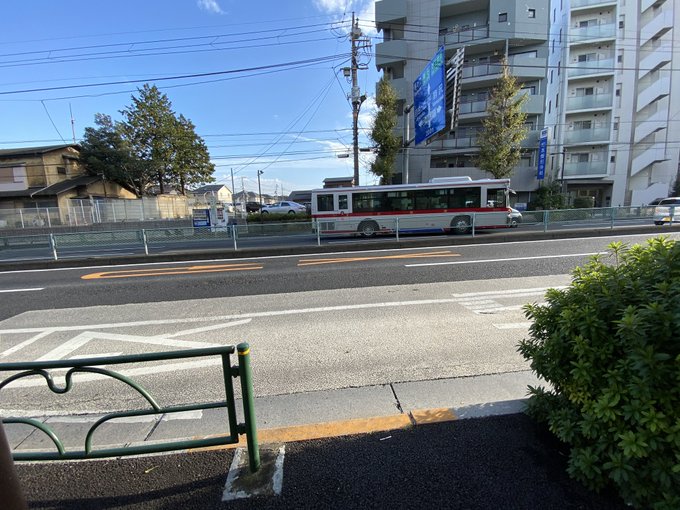 府中四谷橋北 バス亭。なんか近くに野良猫っぽいのがいたな・・・ニャーニャー鳴いてた。