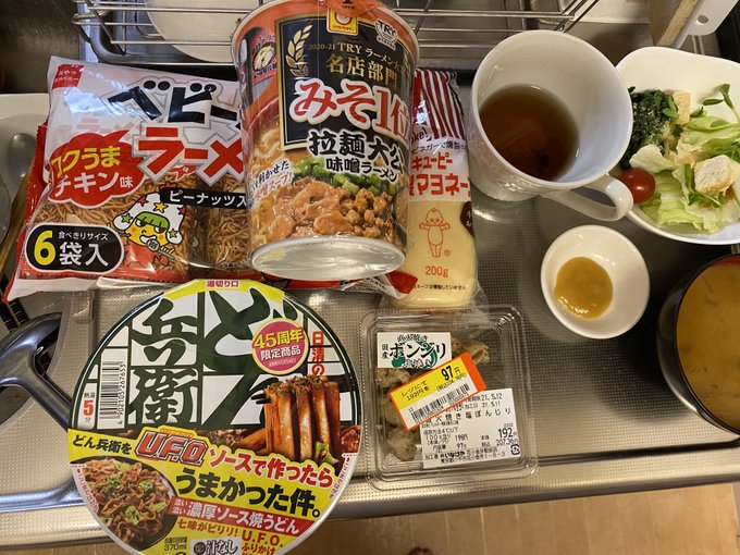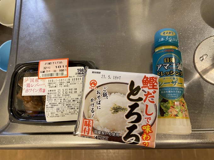 夕飯は塩バターフランスパン セブンプレミアム ゴールド 国産小麦の金の食パン、クリームシチュー、うの花(おから)、ところてん、ミニピザ、その他 pic.twitter.com/8X8BcH4YDG