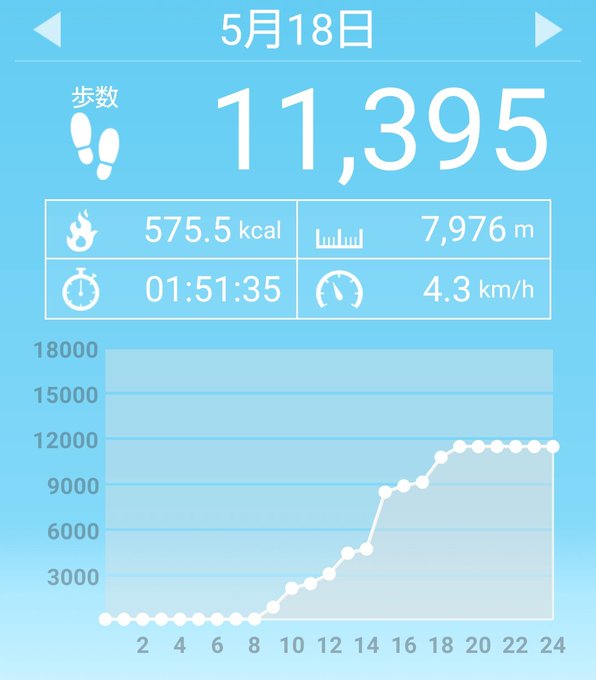 5月1日(土)の歩数は5283歩、消費カロリーは283キロカロリー。 pic.twitter.com/7vJbplaUQE