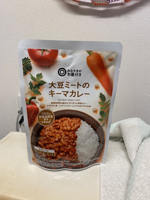 だそうで。肉、動物性原料使わずこれは美味しいね。キーマというか挽肉にあたる部分の大豆ミートも全然違和感なく肉っぽい。小さくて食感さえOKならばこの手の味を染みさす奴は大豆ミートでも全然いいね。