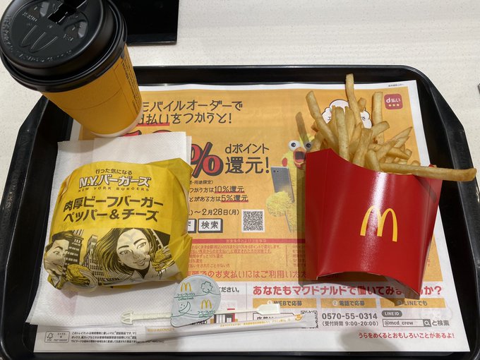 で昼飯を食い、お仕事へ。お仕事終えてマクドでコーヒー休憩して移動。