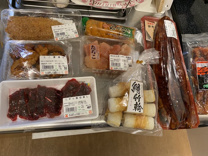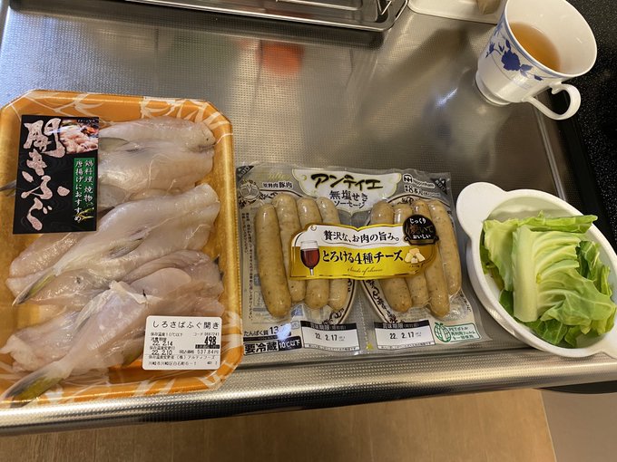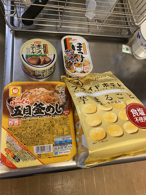 朝飯は食べるのすっかり忘れてて賞味期限が切れたうな次郎、トップバリュ チキンホワイトシチューパイ、根菜類と水餃子スープ、その他。 pic.twitter.com/KJiD7tPMaX