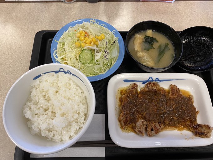 昼飯はたっぷりシャリアピンソースのポークソテー定食、730円。時間なくて流し込んだ感じ。 (@ 松屋 田無駅前店 - @matsuya_foods in 西東京市, 東京都) www.swarmapp.com/c/cbPqKKKQVQ3 pic.twitter.com/luzhIGVmTL