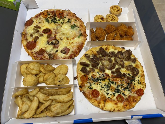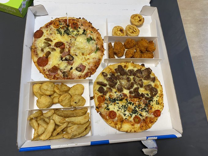 夕飯はドミノピザのBIG BOX オールスター(1ハッピーSサイズピザ2枚+サイドメニュー4品)と不二家のイチゴショートケーキ(こくベジ 国分寺産苺使用)、その他。 pic.twitter.com/NKJHCcYQ39