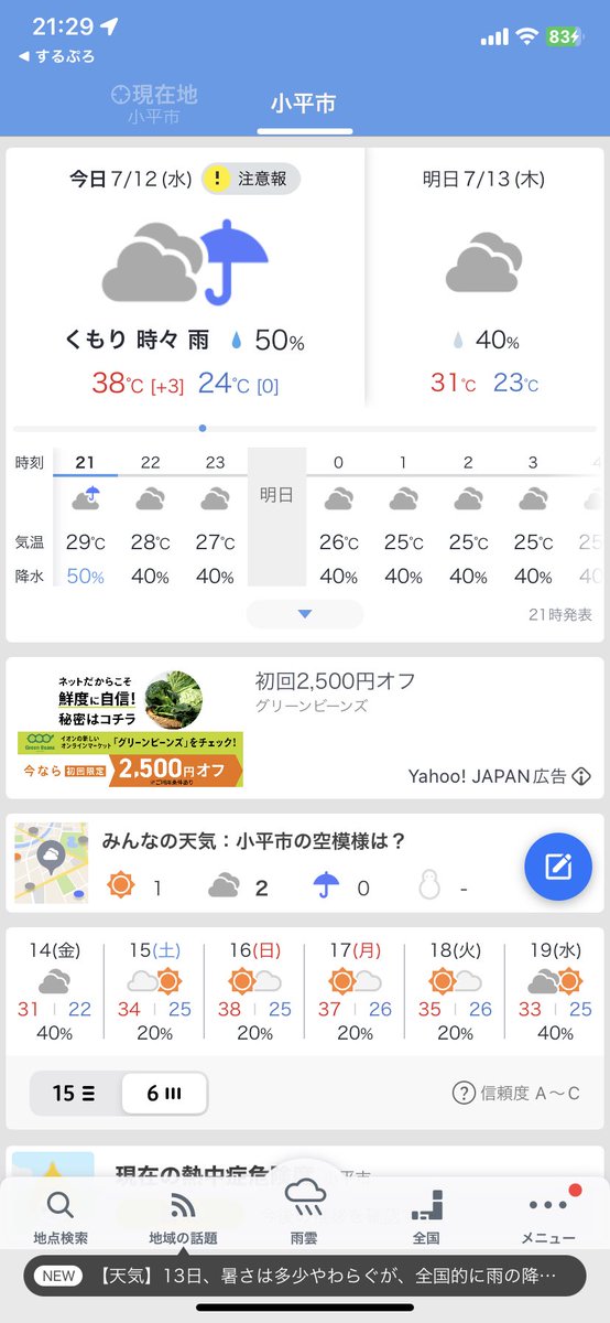 熱中症情報(11時0分)熱中症情報 極めて危険 外出を控えて運動は中止を 東京都小平市 weather.yahoo.co.jp/weather/heatst… #防災速報 アプリ→emg.yahoo.co.jp/dl