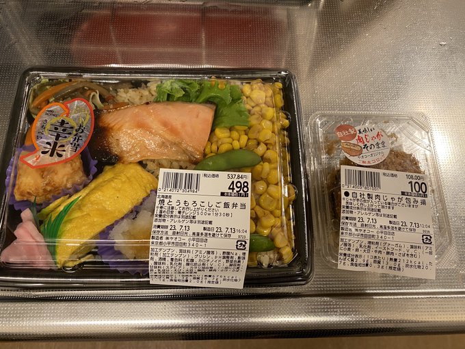 くじら大和煮とくじらそぼろのくじら弁当、1100円(税込み)。個人的には鯨は結構好きなので美味しくいただけましたし、普通に美味いでしょ。くじら大和煮の方は本当、クジラの肉食ってる感、味もしっかり鯨を感じられて好きですね。