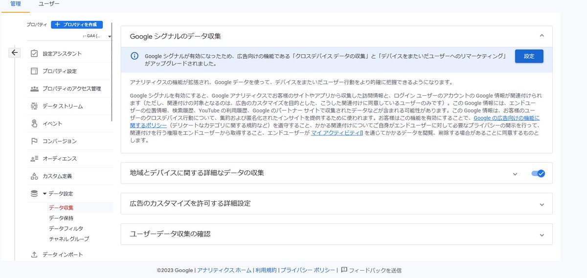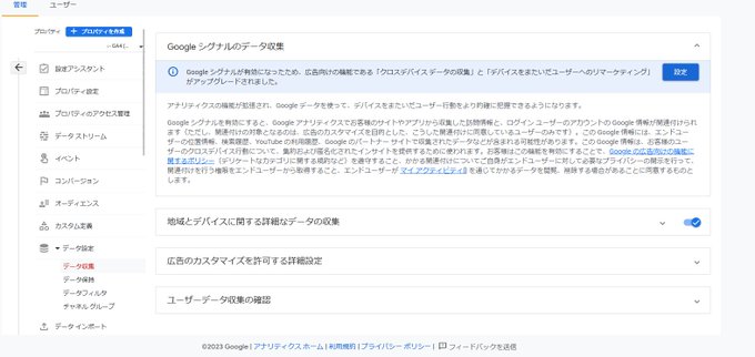 Googleシグナルのデータ収集画面。