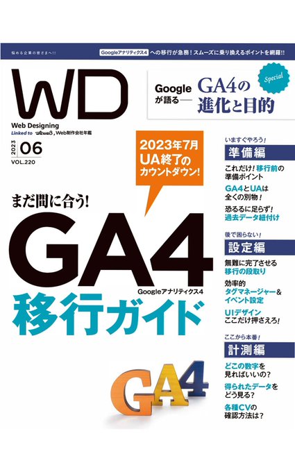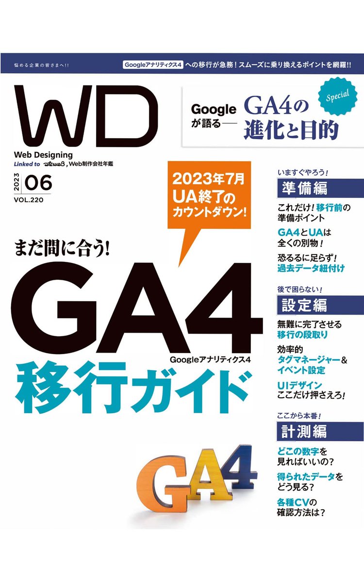 Web Designing 2023年6月号[雑誌] Kindle版「Googleアナリティクス4移行ガイド」でございます。
