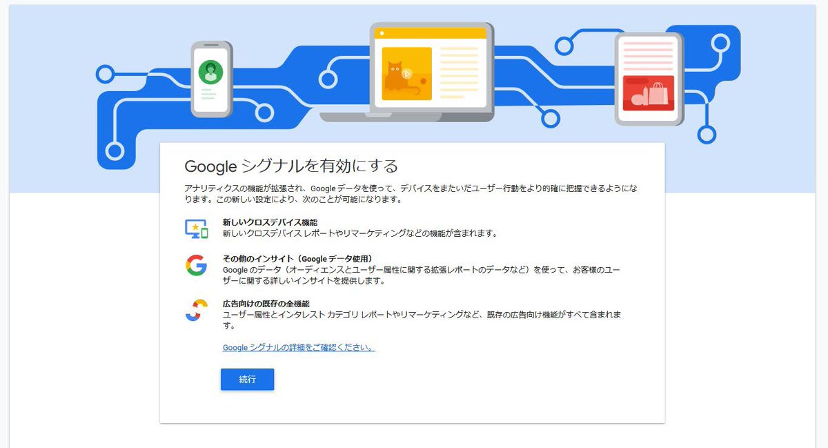 Googleシグナルを有効にする、という感じ。