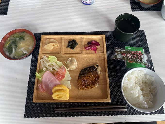 朝飯は納豆卵かけご飯、サラダ、ヨーグルト、炭酸水、その他