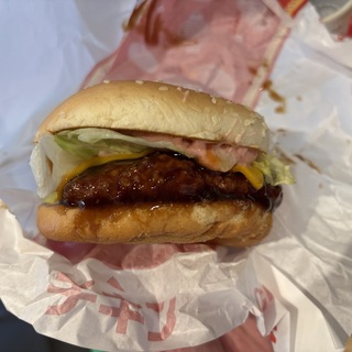 期間限定『ご当地てりやきJAPAN』の中から博多明太ポテトてりやきチキン バーガーのセット、モバイルオーダーのクーポンを使用し、680円。博多明太子ポテトも挟まってるだけに結構なボリューム感、ちょい辛で美味しゅうございます。